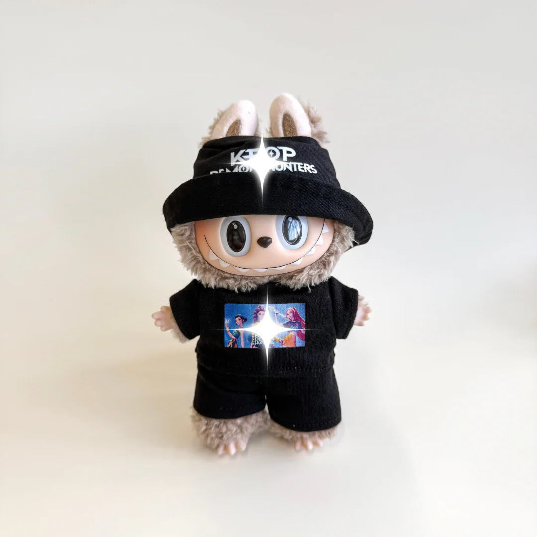 Channel bold K‑style street vibes with the Labubu Black Hunters Inspired Outfit Set. This complete ensemble includes a black bucket hat. matching T‑shirt with a vibrant graphic. and coordinated shorts. Designed for collectors who appreciate sleek. modern fashion with a creative edge. this outfit brings stylish confidence to any Labubu display.