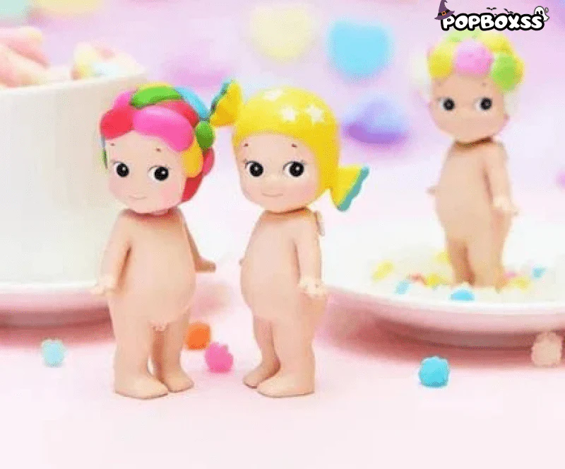 The Sonny Angel Sweets Series features collectible figures inspired by various sweet treats. Each figure is designed with a cute angelic look and a headpiece shaped like a popular dessert. such as cupcakes. ice cream. and candy.